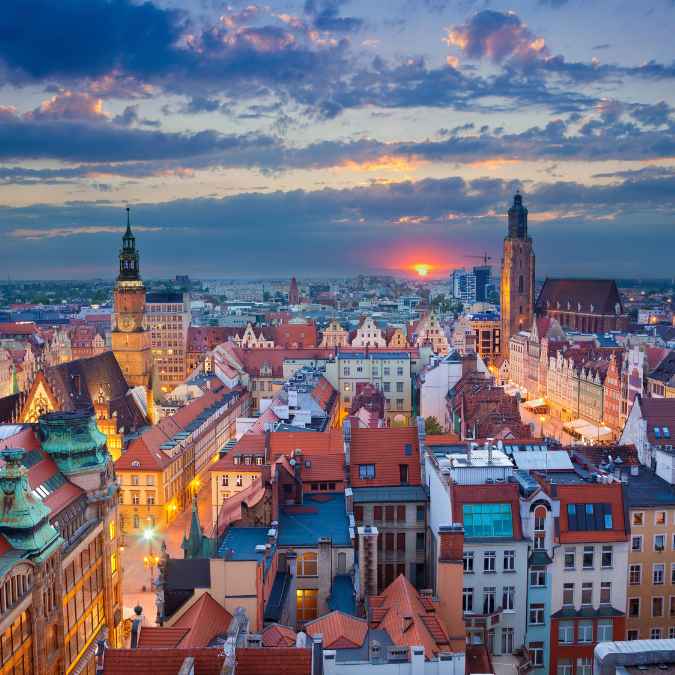Wrocław, gelegen in het zuidwesten van Polen, is een van de meest onderschatte steden in Europa. Deze charmante stad aan de rivier de Oder staat bekend om haar prachtige architectuur, levendige culturele scene en, misschien wel het meest fascinerende, haar meer dan 100 bruggen die de vele eilanden van de stad verbinden. Een van de hoogtepunten van Wrocław is het Oude Stadsplein, een van de grootste marktplaatsen van Europa, omringd door kleurrijke gebouwen en met in het midden het gotische stadhuis. Bezoek de kathedraal van Wrocław en de universiteit van Wrocław, waar je het barokke Aula Leopoldina kunt bewonderen. Dit is een van de mooiste universitaire zalen ter wereld.